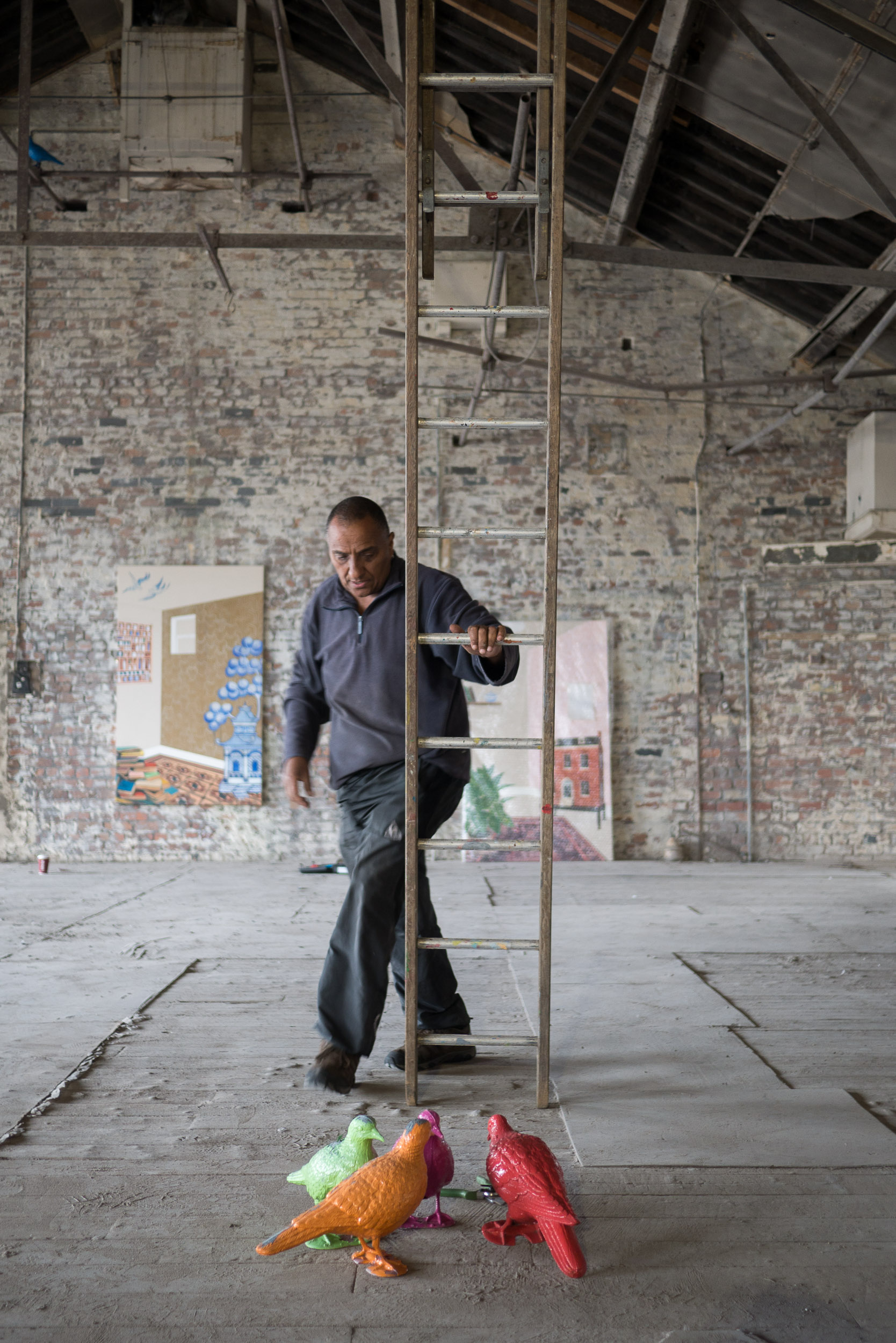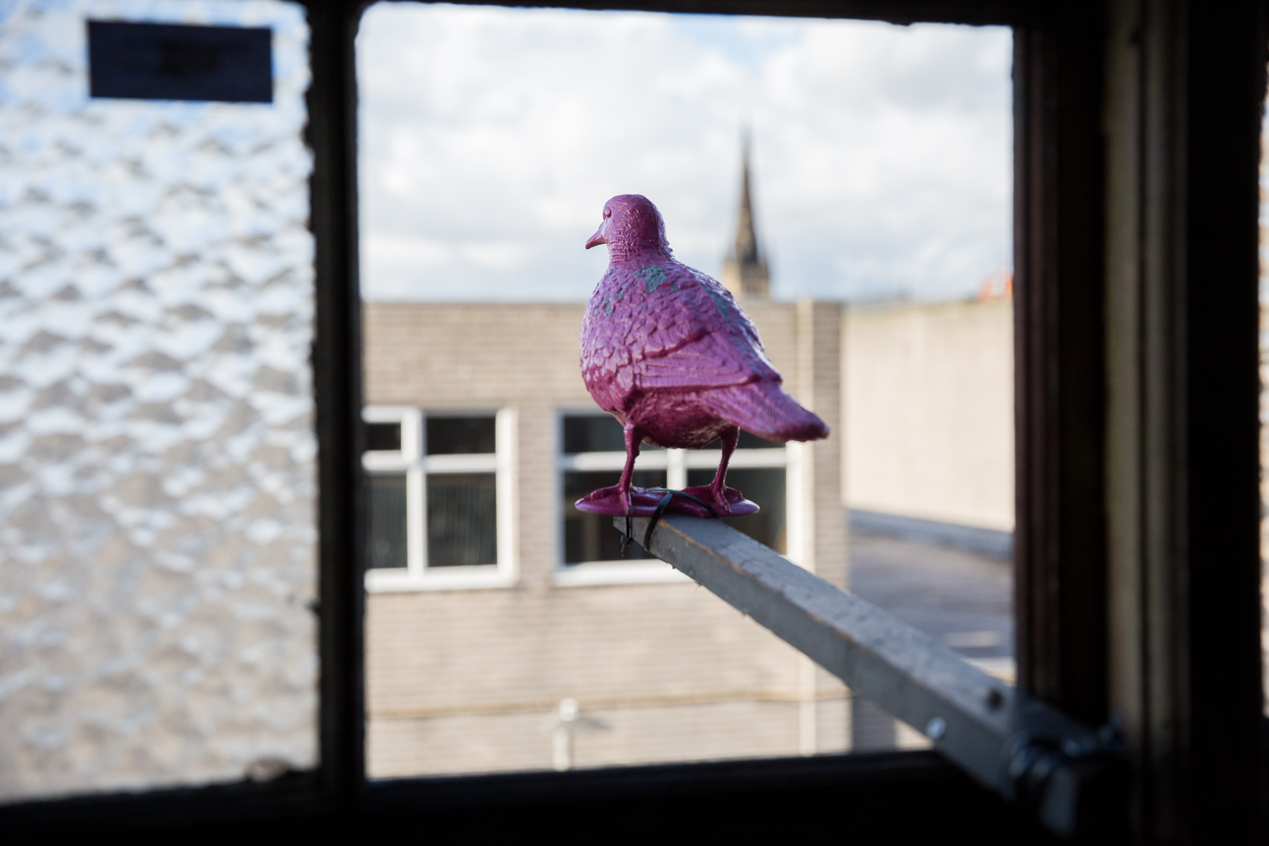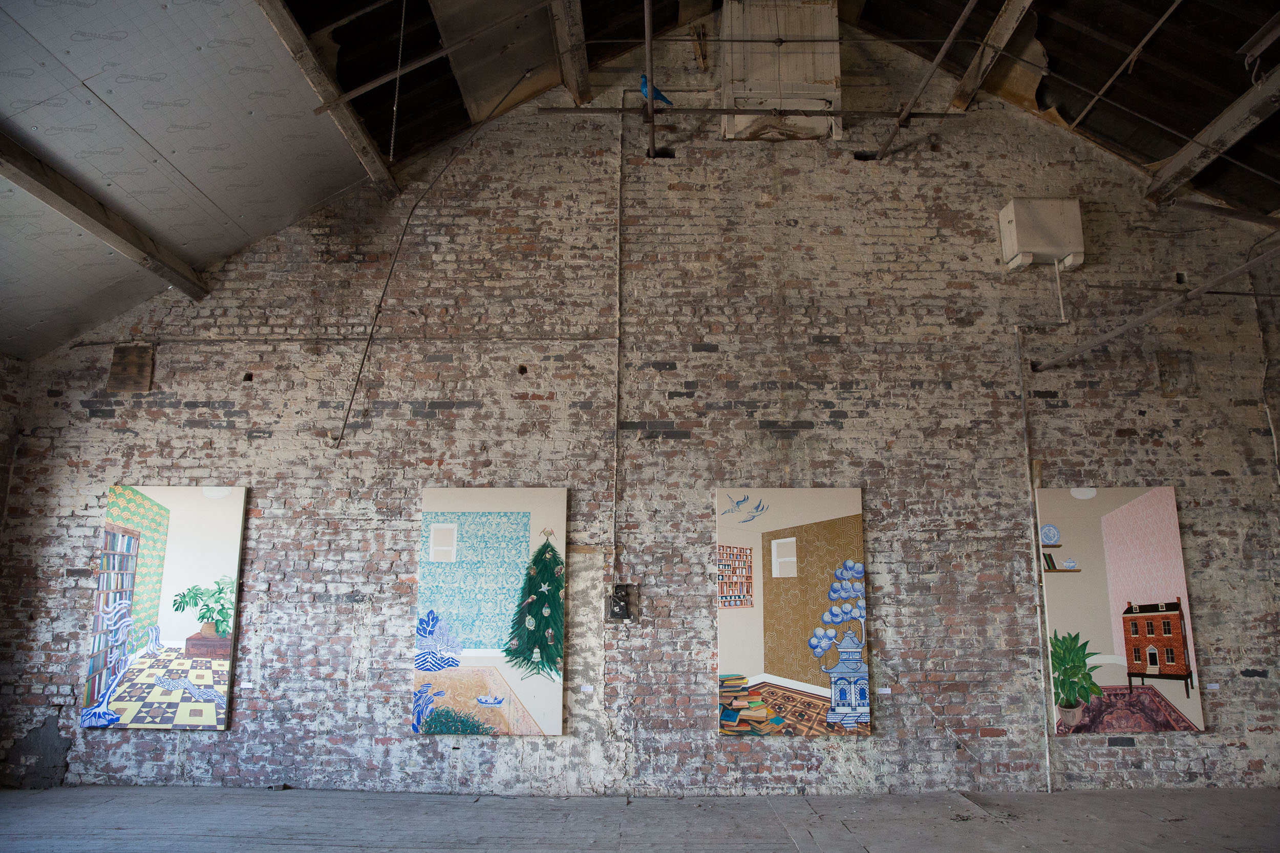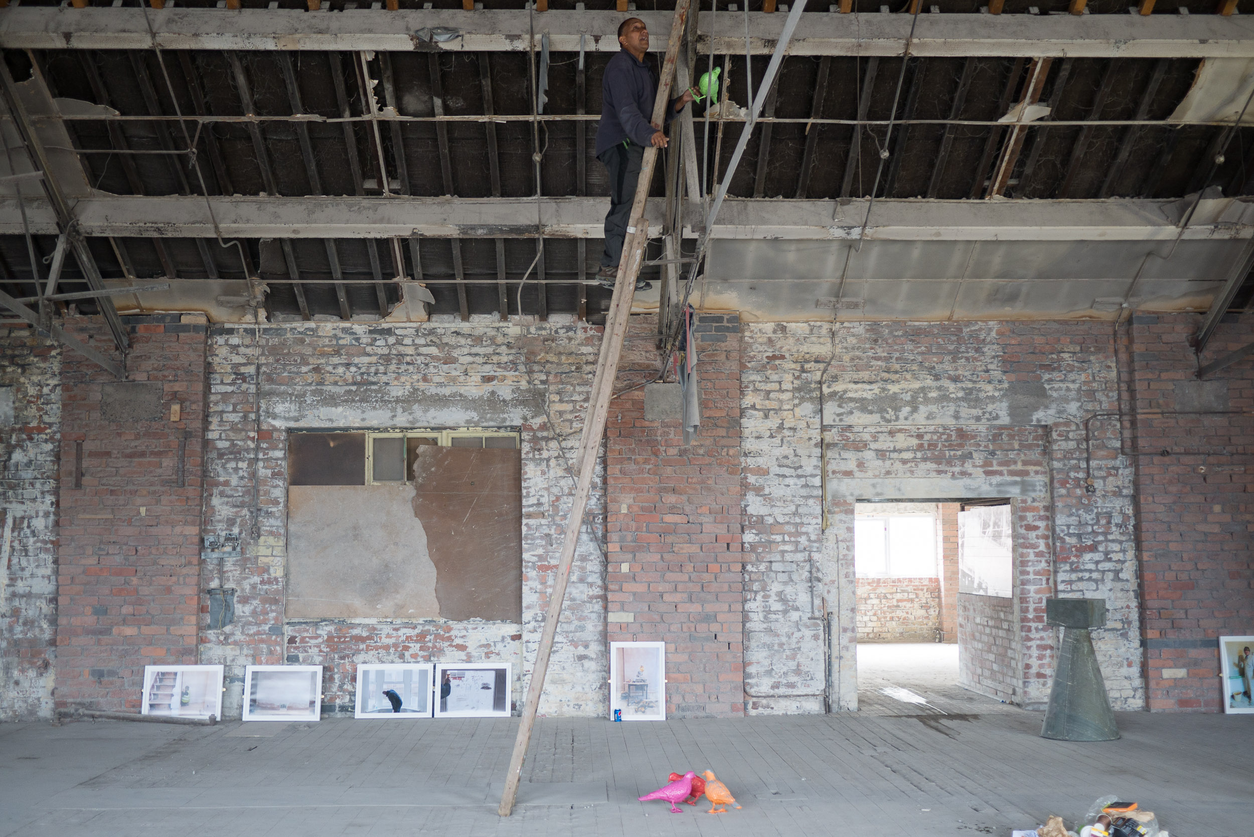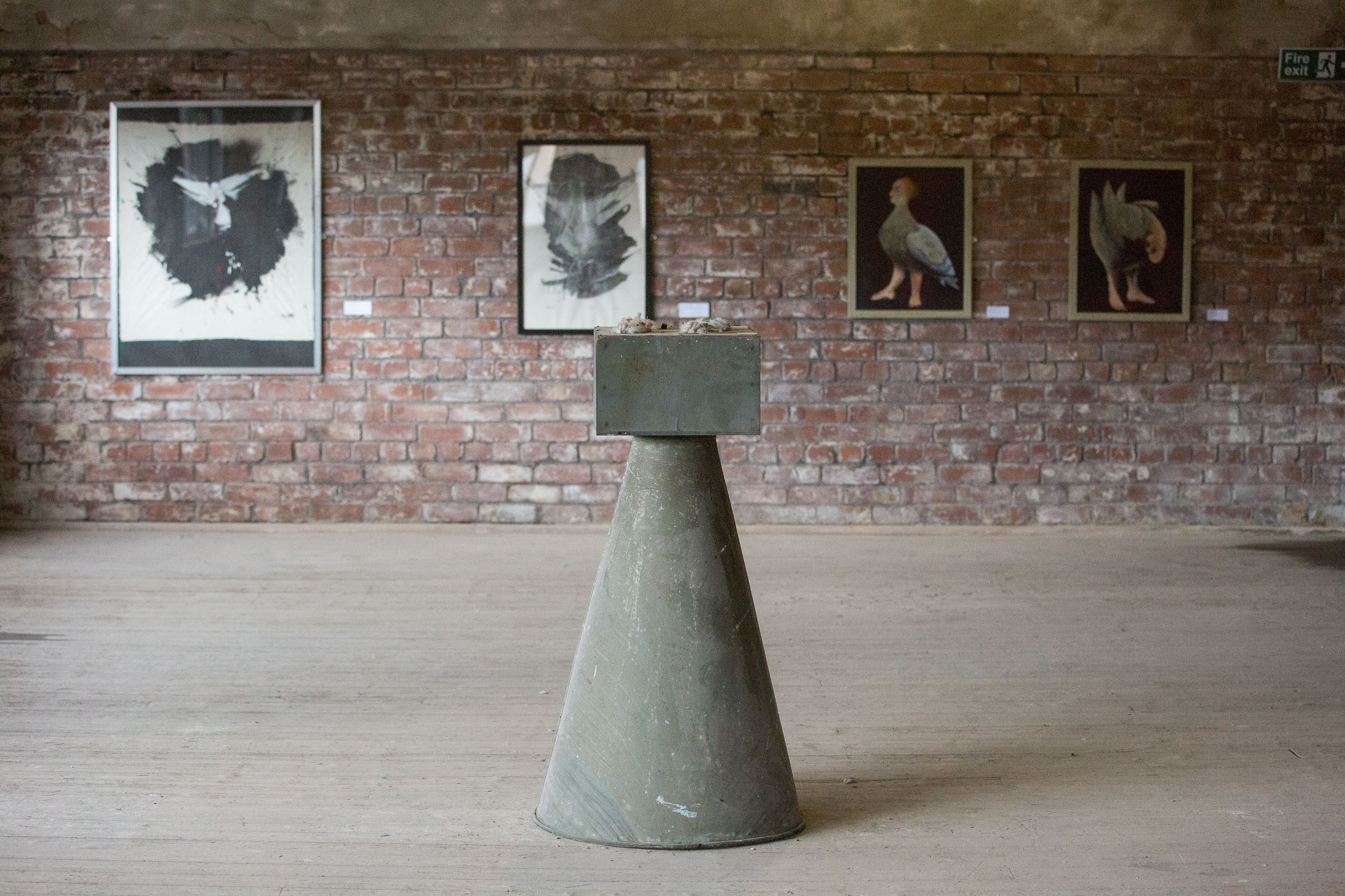 So why call it Dead Pigeon Gallery? On the first few visits to the space on Kempston St, the DPG artists were greeted by many pigeons, some alive, some dead! It led to a throw away comment about it being a ‘dead pigeon gallery’ and so the name stuck! While Jayne was artist in residence with a project called Coming Home, she was on the look-out for somewhere to show work made in response to that time. She met Jason Abbott along the way, who happened to be at the start of his journey in redeveloping the former printers – now known as The Tapestry. The building had been in his family for many years and was then semi derelict. The artists moved in alongside the builders, which made for a very active and dynamic site! The exhibition theme of ‘home’ came about via Coming Home, a project set up to research and develop new ways of redeveloping existing empty houses in the City. Having never been involved in anything arty since leaving school, Jason was unsure what was coming, but the vibe was right. He and the artists had a laugh along the way which took some of the stress away from the construction going on at the same time.