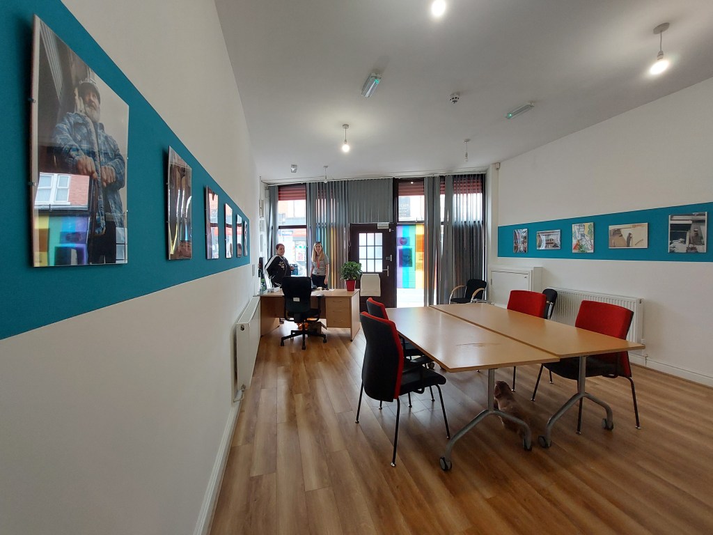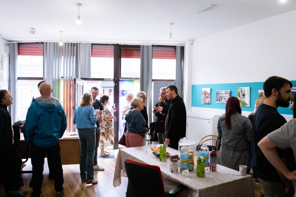 As the first in a unique collaboration between Dead Pigeon Gallery and The Office of Dan Carden MP, this exhibition demonstrated how art and politics could be housed together under one roof, offering many avenues for discussion, including the value of art and culture to a community. A collaboration of this nature was a new approach by Dan Carden’s Office, showing the community an open attitude and that new ideas were welcomed and encouraged. As the second exhibition in Dead Pigeon Gallery’s portfolio, the focus now turned to the value of art and culture to working class communities, bringing a contemporary art gallery to a place where local residents might usually go to attend a councilor’s surgery or access welfare advice. With the exhibition housed on its walls, the everyday life of the office continued.
