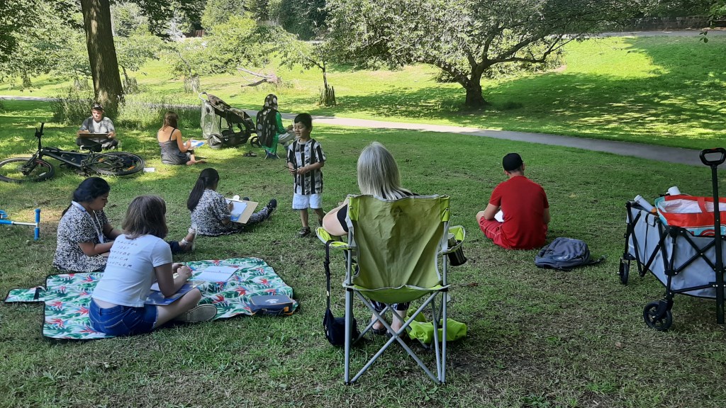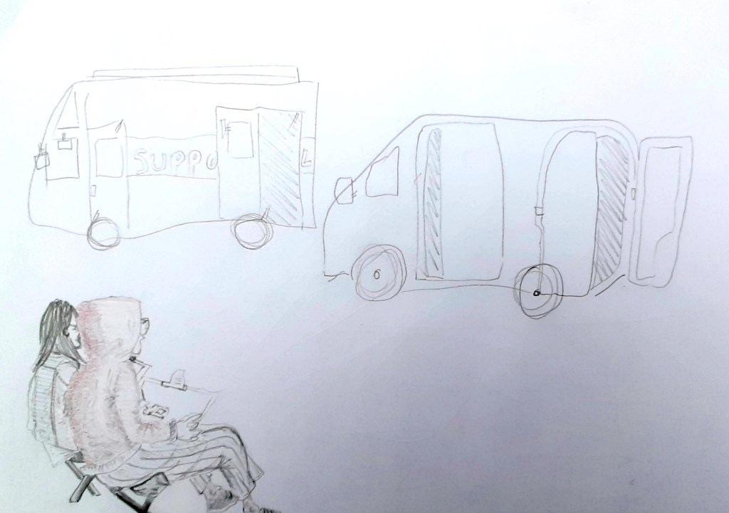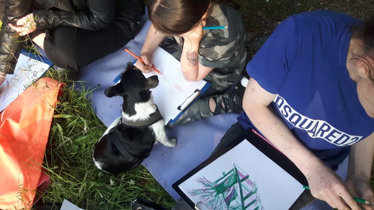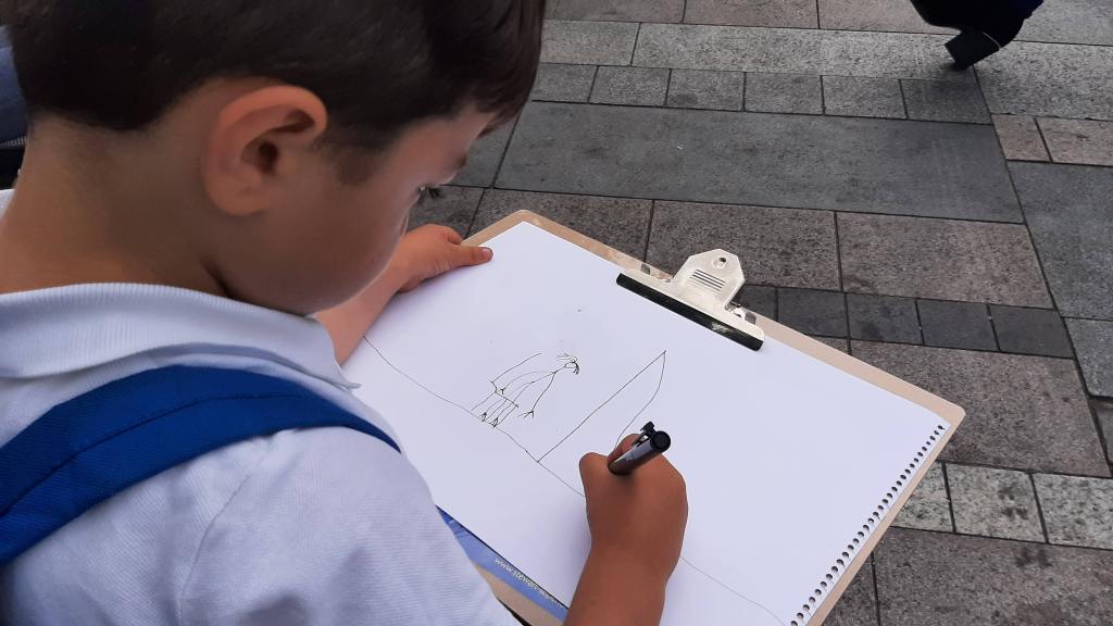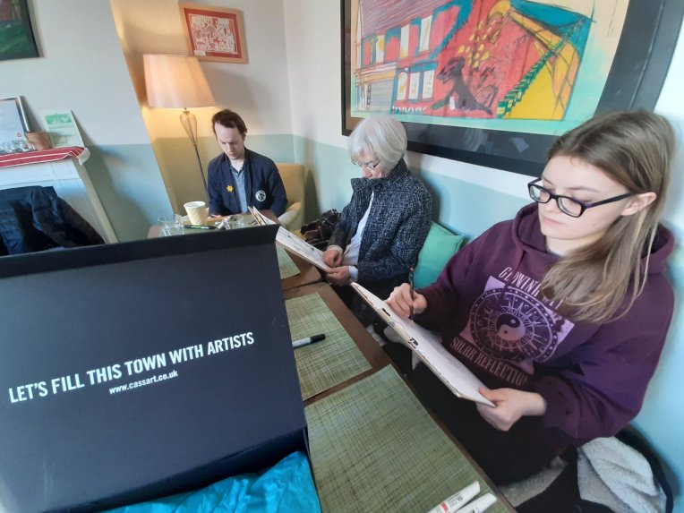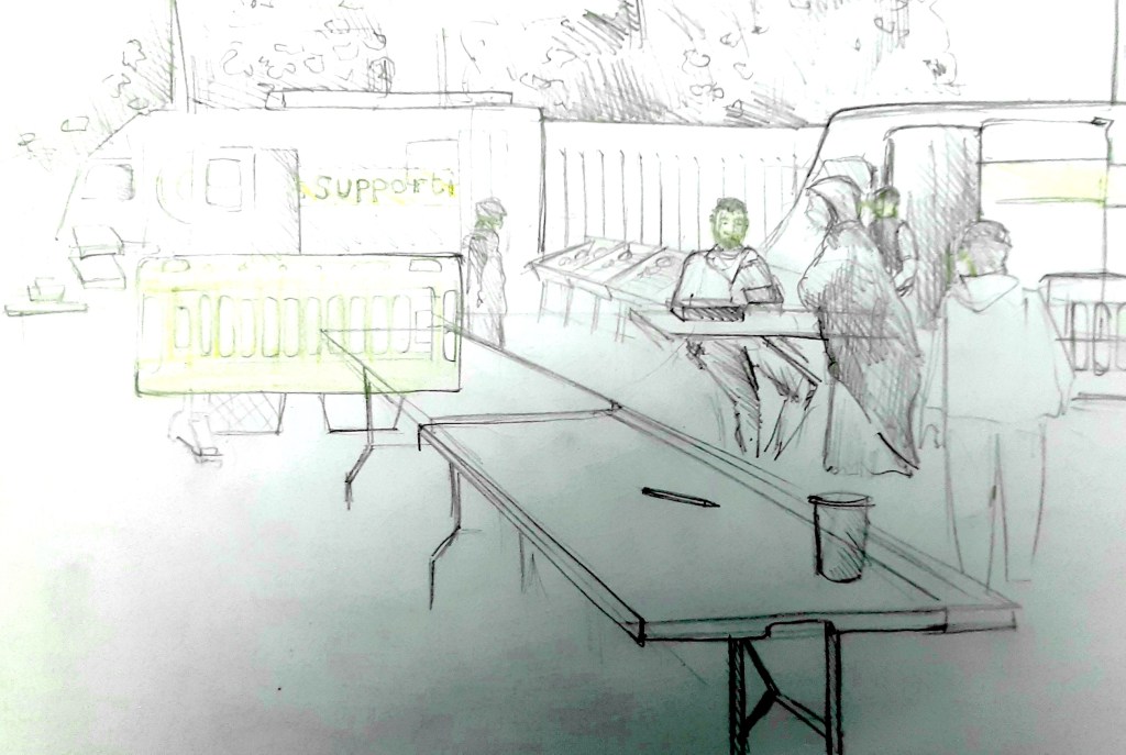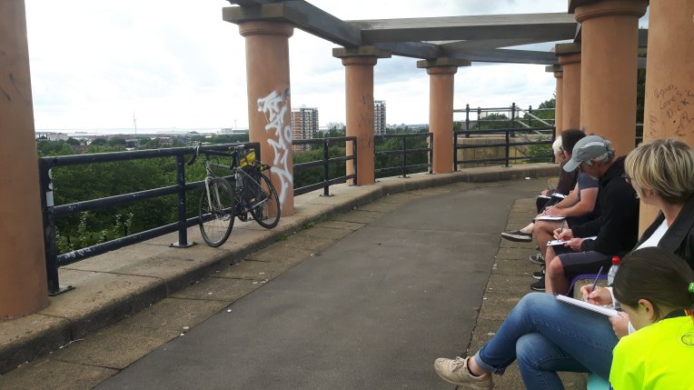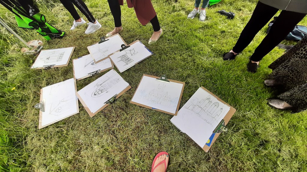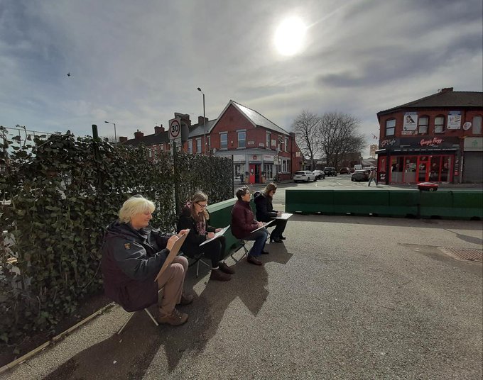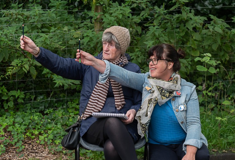 The beauty of the project is that it’s portable. It can go anywhere and work with anyone. There are no requirements needed, all materials are basic and provided, including portable stools! It suits people who’ve never sketched in their lives to established artists as there’s no judgment. The idea came after a period of intense grief after losing my Mum. I began sketching and realised that 10/20 minutes could pass by without realising, a tonic. It was the meditative quality I realised was the aspect worth sharing with others. Being a ‘club’ rather than a course leads to a laid back approach that anyone can drop into at any stage as there is no ‘teaching structure’, the sessions respond to the environment and the group itself.