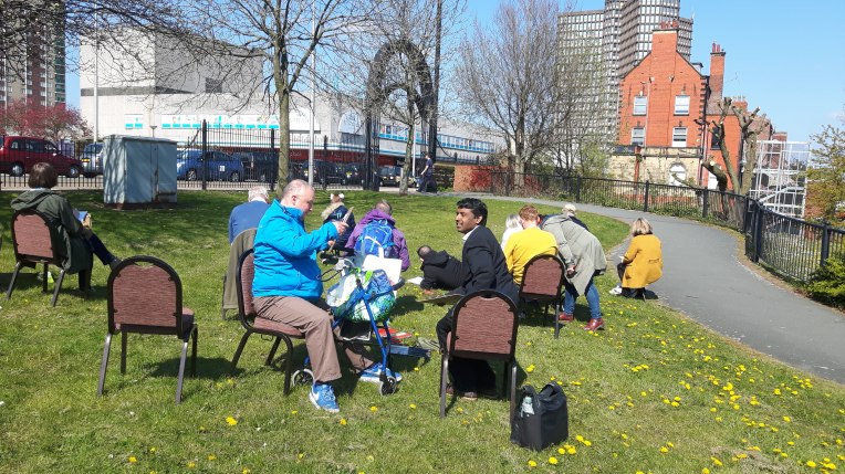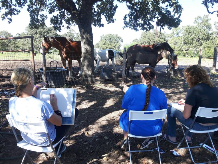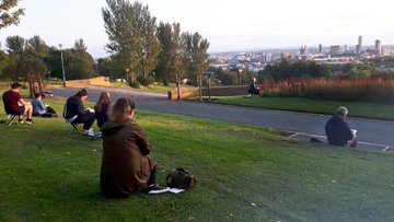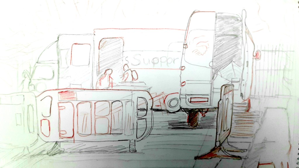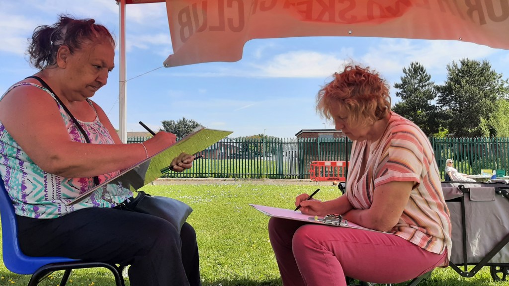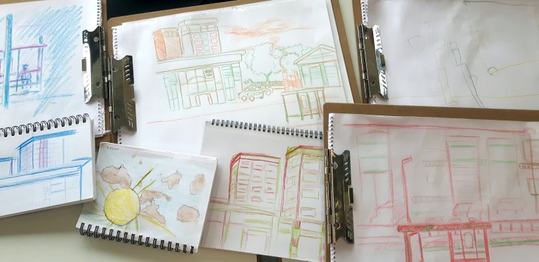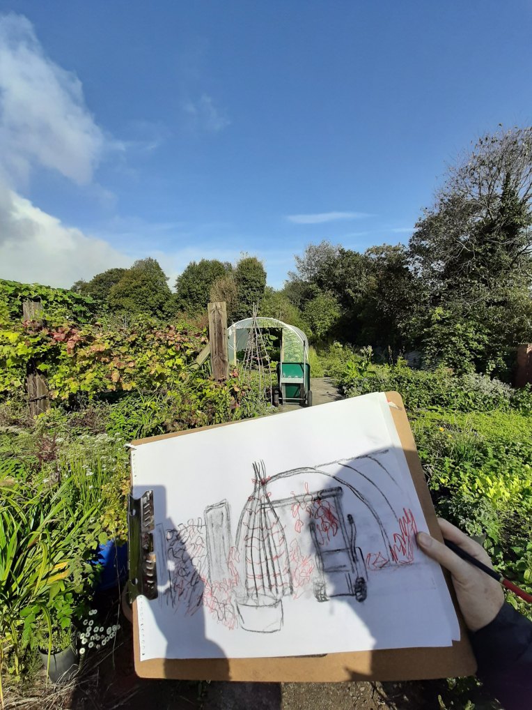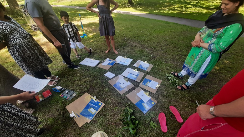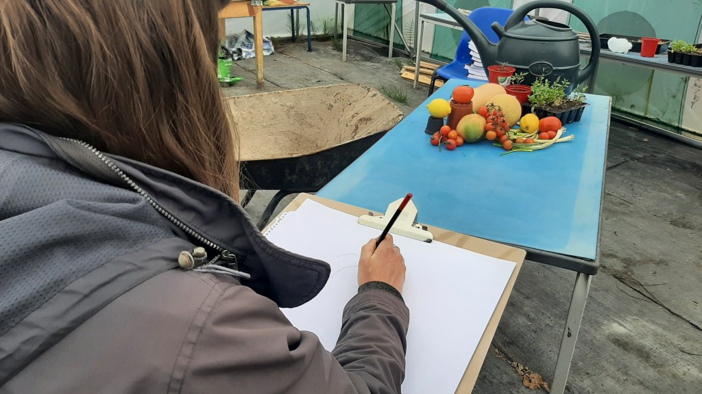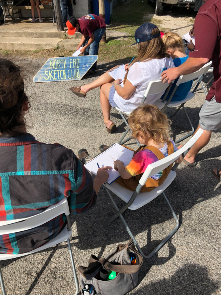 The beauty of the project is that it’s portable. It can go anywhere and work with anyone. There are no requirements needed, all materials are basic and provided, including portable stools! It suits people who’ve never sketched in their lives to established artists as there’s no judgment. The idea came after a period of intense grief after losing my Mum. I began sketching and realised that 10/20 minutes could pass by without realising, a tonic. It was the meditative quality I realised was the aspect worth sharing with others. Being a ‘club’ rather than a course leads to a laid back approach that anyone can drop into at any stage as there is no ‘teaching structure’, the sessions respond to the environment and the group itself.