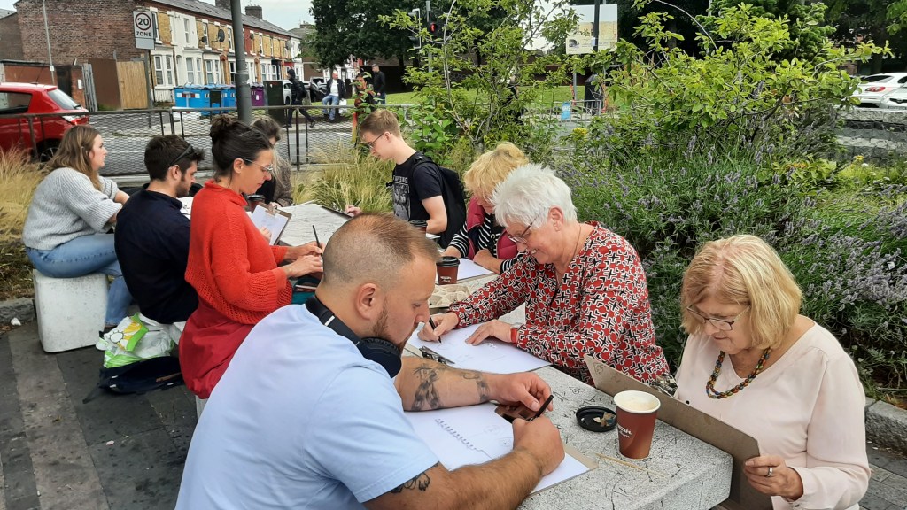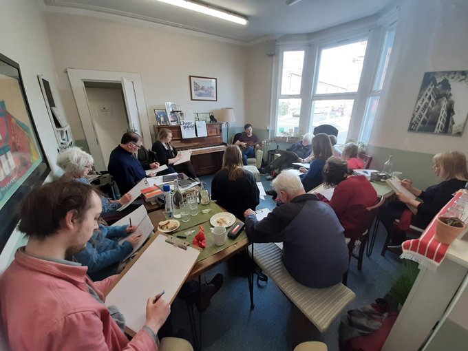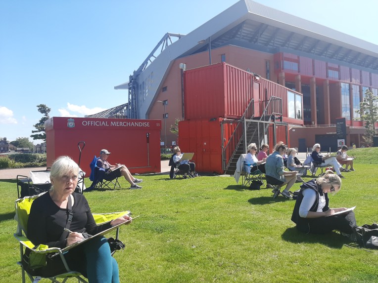 My feedback on Lockdown Sketch Club: During a period of unexpected and unprecedented loss of freedom, and increased anxiety for ourselves and the world, it has been a welcome distraction to see Jayne’s quirky videos and demonstrations, and to respond to the regular art challenges she has given. We’ve been urged to leave our comfort zones and try new subjects. Seeing the wide variety of responses has been great fun. Everyday objects become subjects of great interest when you look at them as something you might draw or paint. I have been a participant in Jayne’s sessions when the North End Sketch Club came “On Tour” to Bootle Library in recent times and look forward to being involved in socially distanced sketch club sessions she plans to hold in Stanley Park. Jayne has a truly inclusive and engaging approach, believing that anyone can enjoy losing themselves in the activity of observing and capturing their surroundings. Sue Herihly