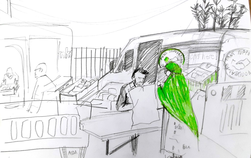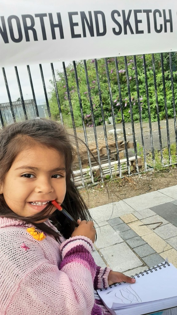 With Jayne extending the north end sketching group to online has helped me not feel so isolated, as I’ve been shielding. The humour in the posts shine through and makes me want to join in therefore it’s a little bit of “normality, “ plus I’ve enjoyed breaking out the old sketchbook and crayons also by keeping in touch through the weeks of lockdown means when sketch group starts up again, we’ll be able to share our experiences through the sketching we’ve produced. Christine Smith