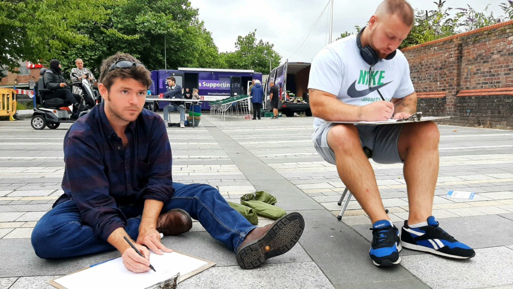 From March to June 2020 I offered up my Instagram page to sketchers to send me work they’d been doing during lockdown to keep that line of communication open and exhibit the work within my online platform. When I started it I didn’t envisage it lasting so long but it developed beautifully into being commissioned by the Human Libraries project based at Bootle Library, Sefton into an online version of sketch club. It consisted of 3 videos I made myself using a tripod and mobile phone at home, a very DIY approach that carried over into the themes for each session: Ep 1, At Home, Still Life, Ep 2, Press Pause on the Telly Sketch and Ep 3, What’s Outside Yours? I love the fact that this opened up the club to a wider audience, getting entries from all over Liverpool, UK, USA and even one from The Bahamas!